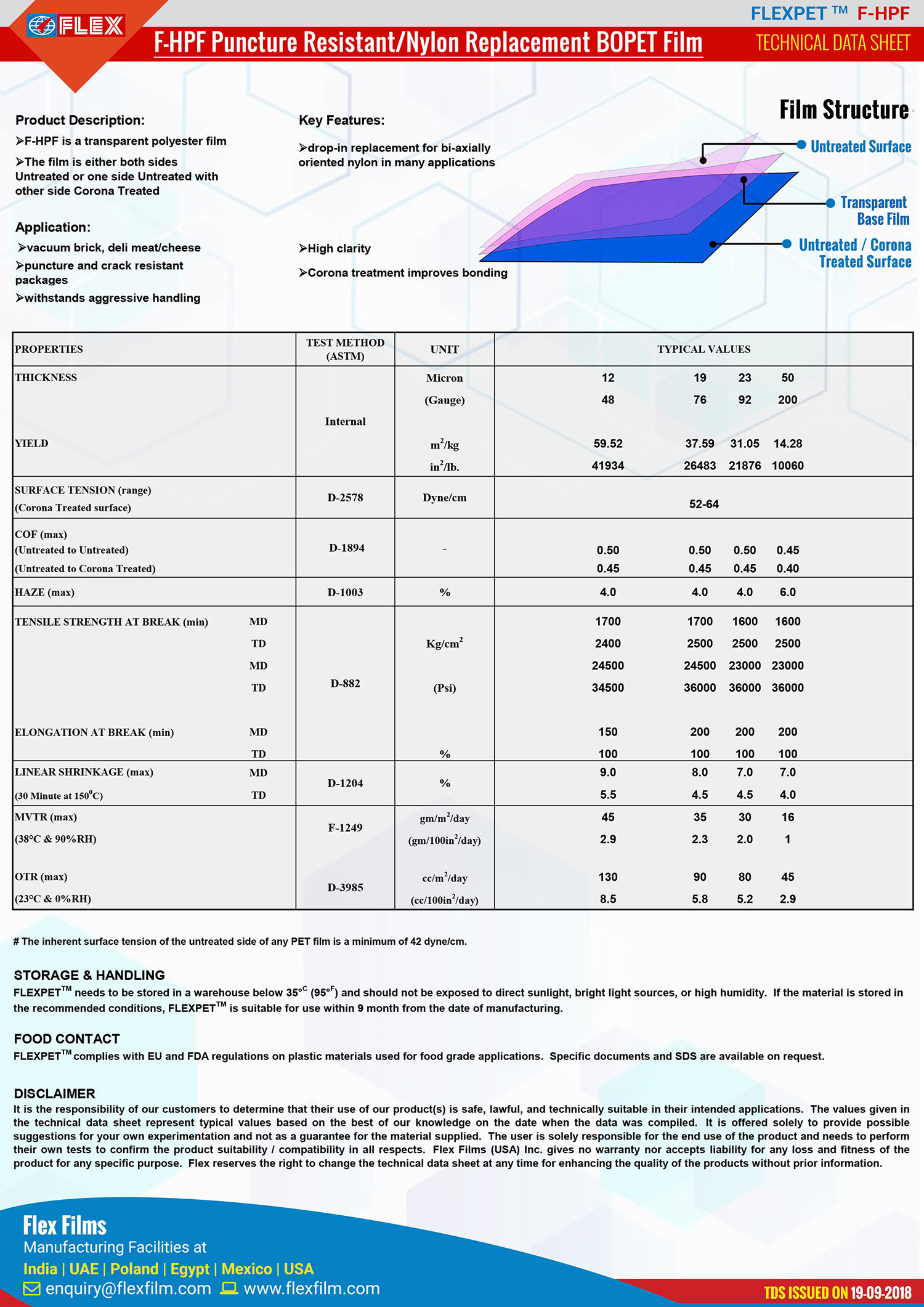 NOTE- Three grades in this area have one or multiple global patent applications assignable to Flex Films.